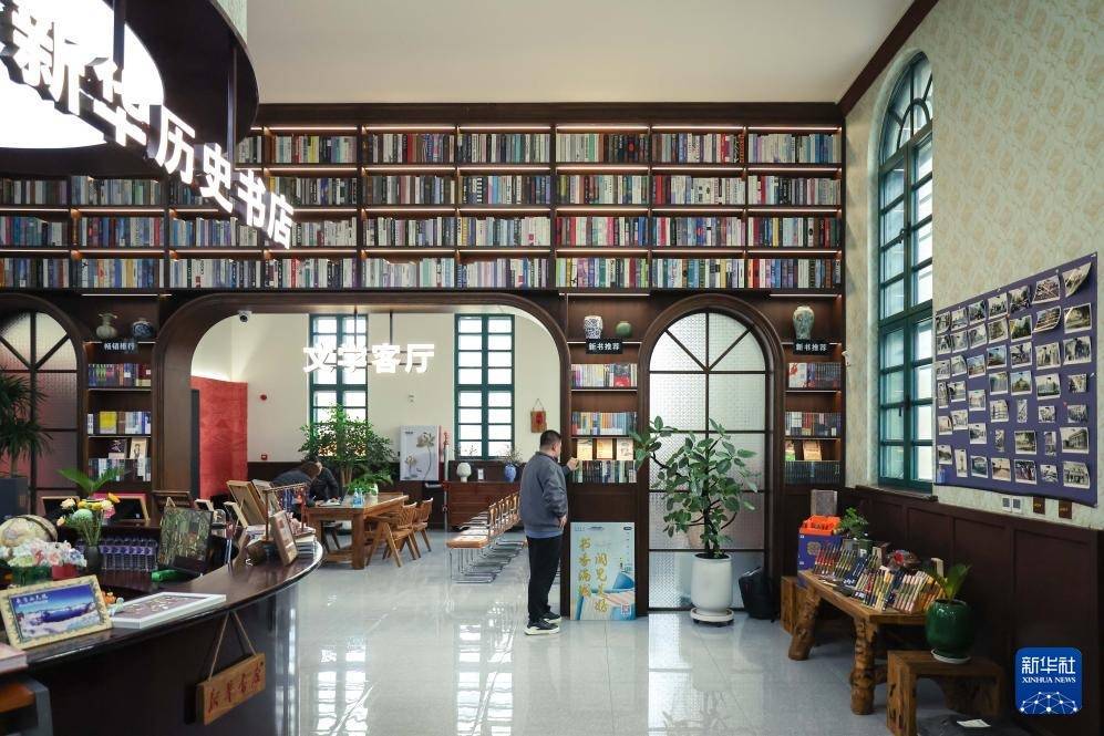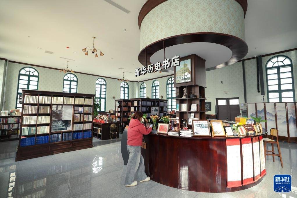 位于吉林省长春市中轴线上的北书房·新华历史书店所在建筑是市级文物保护单位。2025年,吉林省新华书店集团遵循“修旧如旧”原则对其进行改造,保留浅黄色外墙和圆拱形窗户等古朴风貌,内部涵盖图书销售、文创展示、咖啡休闲、研学体验等功能,免费向市民开放,让历史建筑变身书香洋溢的“百姓书房”。